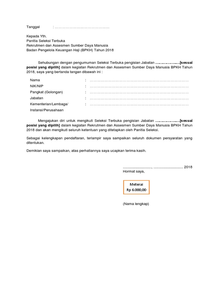 Contoh surat lamaran kerja yang baik dan benar untuk melamar pekerjaan di berbagai instansi baik bumn maupun swasta lengkap dengan file.doc siap untuk didownload dan diprint out/cetak. Materi surat lamaran kerja : Contoh surat lamaran pekerjaan berikut ini kami sajikan kepada para pelamar atau pencari kerja agar lebih mudah dan cepat mengajukan lamaran sesuai dengan posisi jabatan atau pekerjaan yang. Surat lamaran kerja merupakan salah satu syarat untuk mendapatkan pekerjaan yang ingin anda dapatkan. Akan tetapi, tak sedikit yang sulit membuatnya mengingat banyak faktor yang harus diperhatikan.